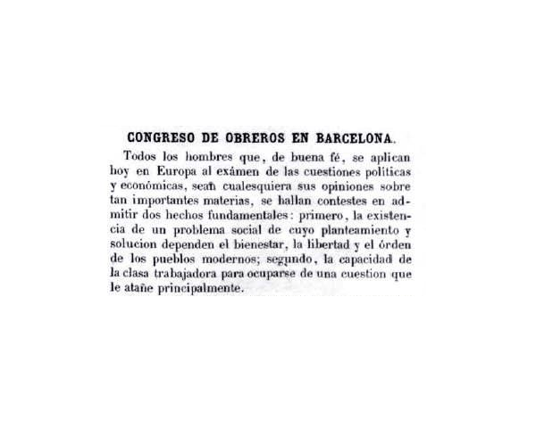 Como no podía ser menos, fue materia de reflexión del Congreso Obrero de Barcelona de 1870, uno de los motores de impulso para la creación de la Primera Internacional. En sus sesiones se tocaron varios temas fundamentales: