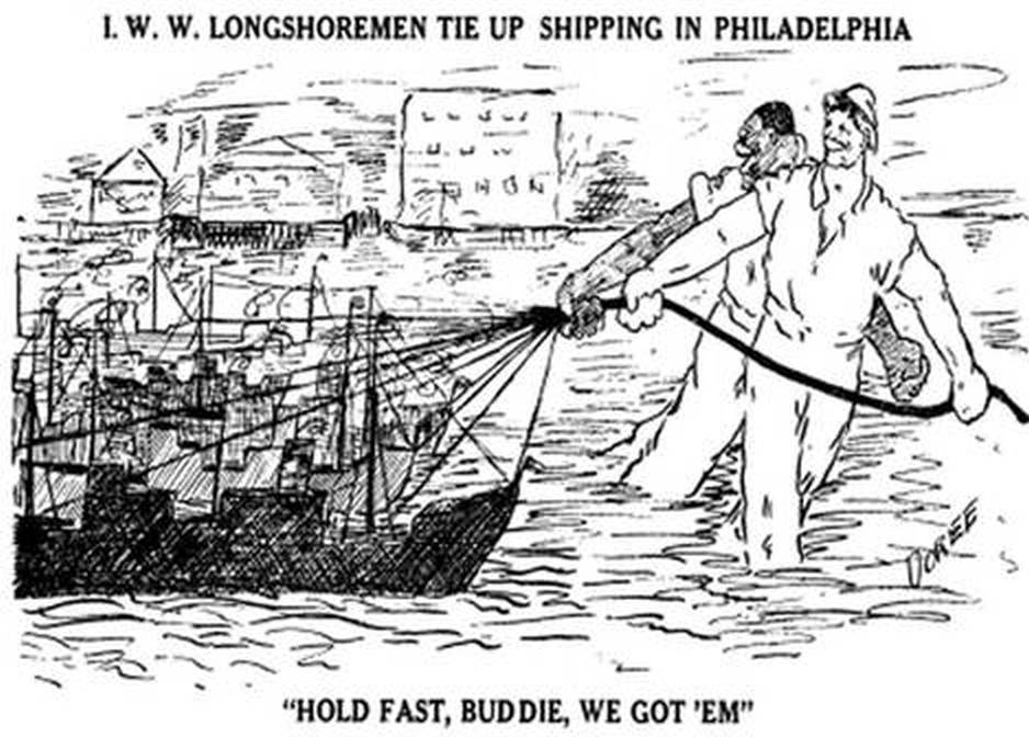 En un ámbito en donde el obrerismo siempre ha destacado por su espíritu cosmopolita, como sería el caso de los trabajadores marítimos y portuarios, la IWW tenía presencia internacional, siendo de facto, el sindicato revolucionario más diseminado por el mundo en este ámbito en las primeras décadas del siglo XX. Siguiendo con este hilo, en donde podemos encuadrar a figuras anteriormente mencionadas como Barker, me gustaría destacar el caso del Local 8 de los puertos de Philadelphia, en Estados Unidos de América.