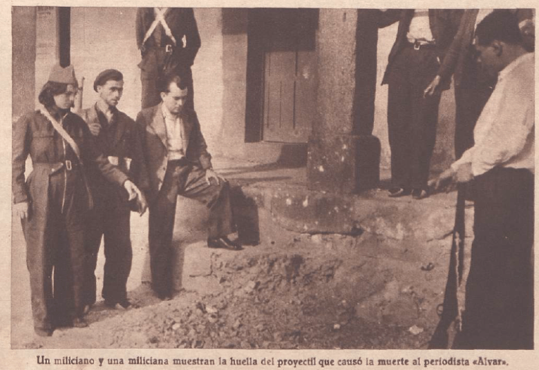 Acerca del estado ruinoso del pueblo, convertido pronto en centro de operaciones del frente republicano, dicen mucho algunos reportajes sobre la muerte de Alvar, un periodista del Heraldo que participaba en las Milicias de la Prensa8, y que murió en la plaza del pueblo por el impacto de un obús a principios de agosto, en el que también fue herido el alcalde de Guadarrama. De un viaje posterior a los escenarios del trágico final de Alvar por parte de unos compañeros conservamos algunas descripciones del pueblo durante aquellos días (Crónica 9-8-1936):