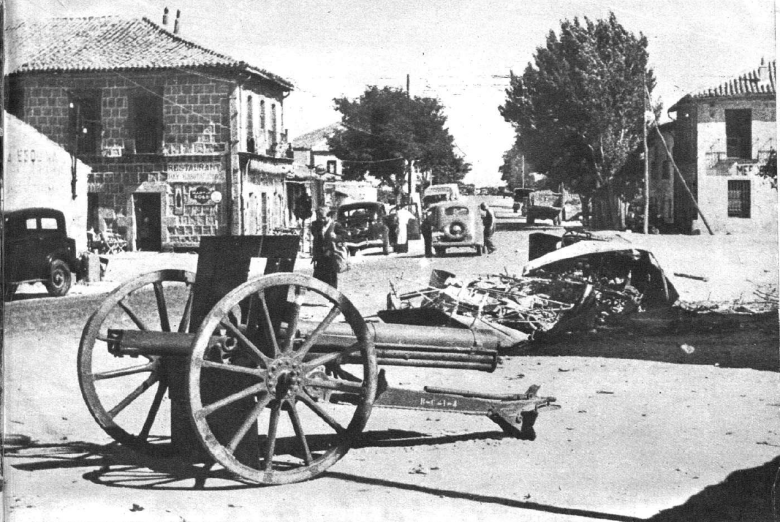 El ambiente se espesa con el humo de algunas casas destruidas por el bombardeo enemigo. Este pueblecito es uno de los más castigados de la Sierra. El Ayuntamiento, las escuelas, las casas particulares muestran los zarpazos de la metralla.Salvo unos heroicos números de la Guardia civil y algún que otro miliciano, no hay aquí más seres vivientes que algunos pobres animales, asustados por los estampidos, que se refugian en la ruina de las casas.