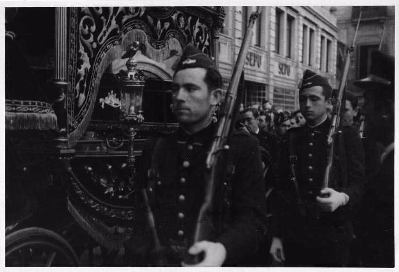 Imagen de portada: soldados de Aviación custodiando el coche fúnebre durante el entierro.