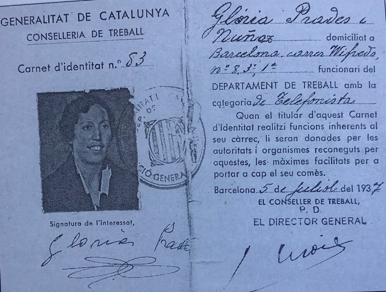 Bien entrada la Segunda República, en octubre de 1932, comienza a trabajar de telefonista en la Consejería de Trabajo de la Generalitat de Cataluña gracias a una antigua amistad de su familia con la del Conseller Martí Barrera. Desde su puesto de jefa de centralita ejercerá una labor fundamental durante los prolegómenos y el desarrollo del golpe de Estado de julio de 1936, pues fue nexo de información entre los libertarios que contribuyeron a desbaratar el levantamiento faccioso en Barcelona y Madrid, y entre los gobiernos catalán y central.