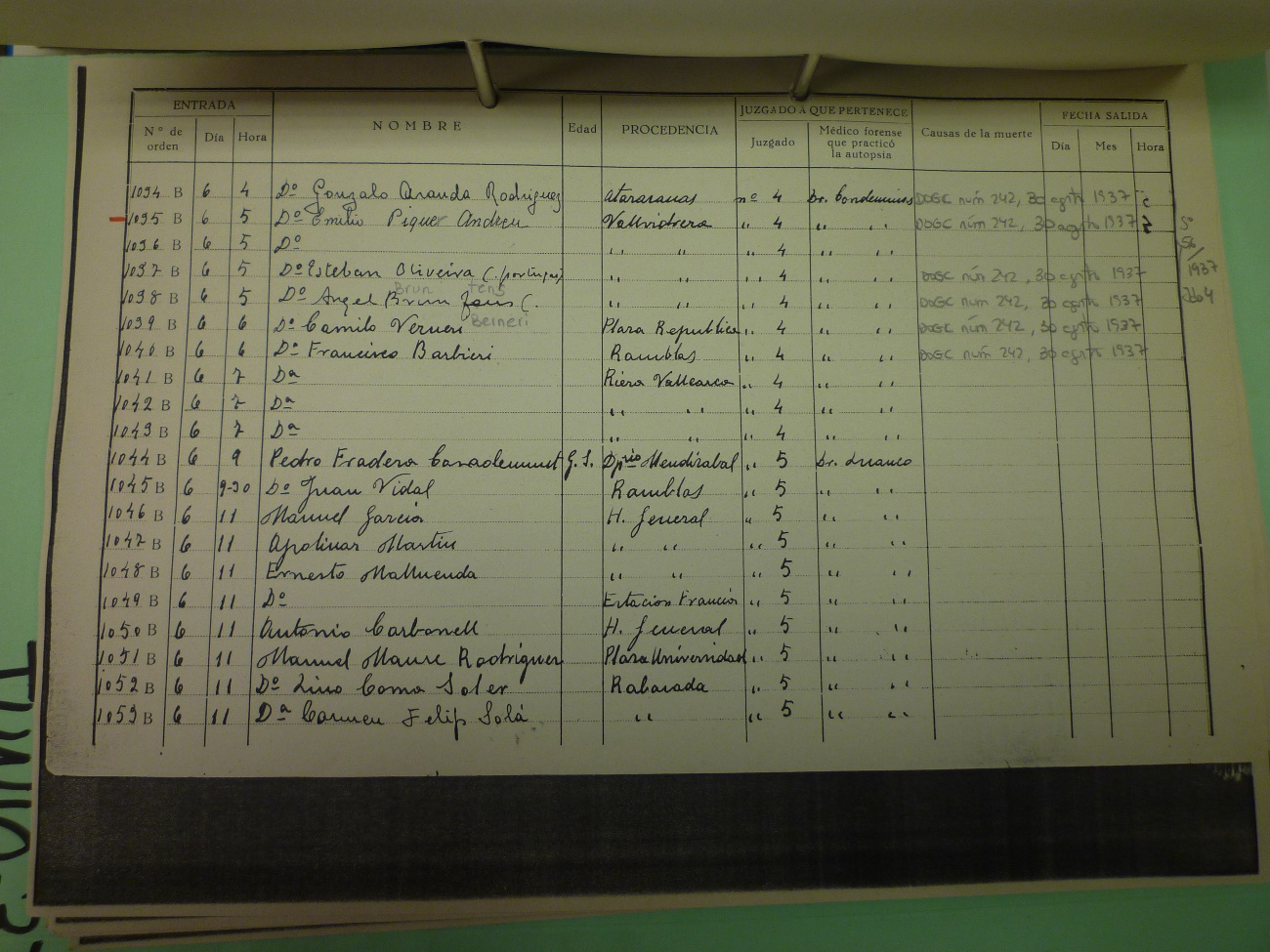 E: Fitxes del dipòsit de cadàvers del Hospital Clínic