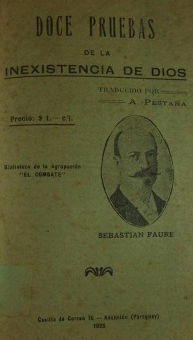 Obra del pedagogo, escritor, divulgador y filósofo anarquista francés Sébastien Faure (Saint-Étienne, 1858 – Royan, 1942), Doce pruebas de la inexistencia de Dios es una conferencia publicada en Francia en 1914, y que en España se leyó muchísimo hasta la Guerra Civil.