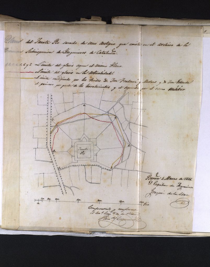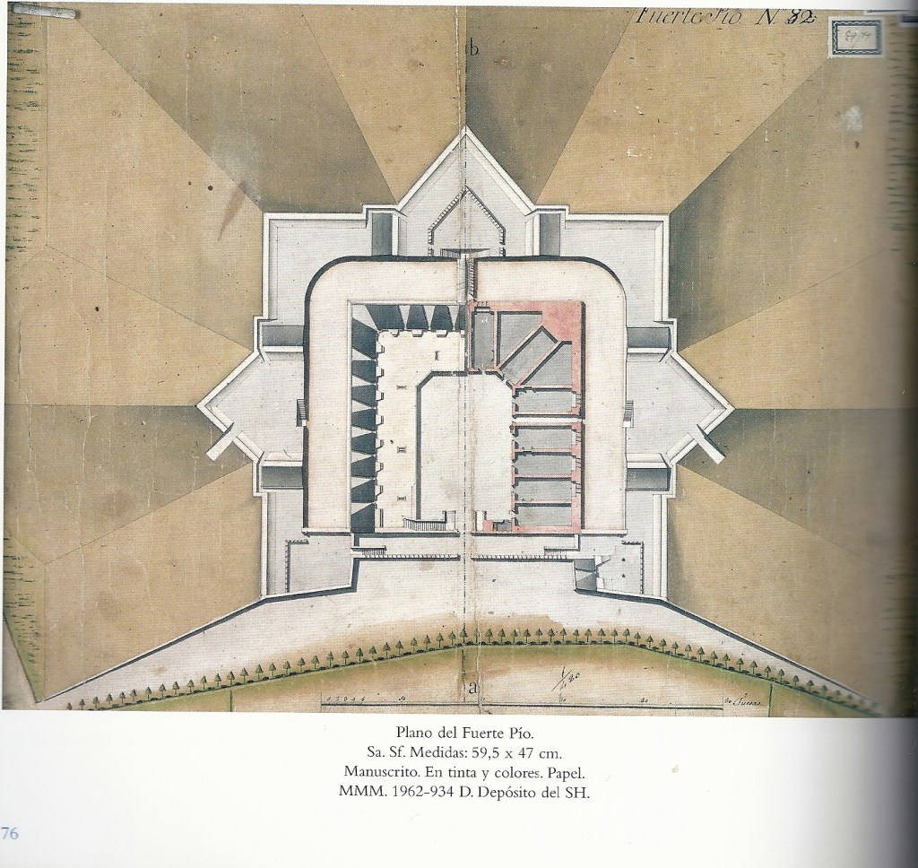9 Arxiu de la Corona d´Aragó, Comandancia de Ingenieros, Leg, 44; Plànols del Fort Pius, a La Academia de matemáticas de Barcelona. El legado de los Ingenieros militares, Inspección General del Ejército, Barcelona, 2004. pp. 75-76.