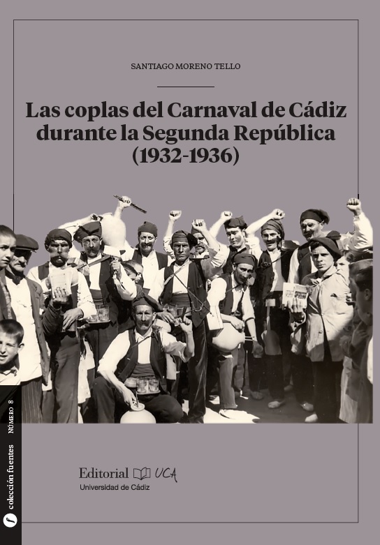 Las Coplas de Carnaval en Cádiz durante la Segunda República, de Santiago Moreno, y editado por la Universidad de Cádiz, nos muestra un tema siempre sugerente, que atrae tanto a los historiadores culturales como sociales. En esta temática, además, a todos los investigadores de la época de la II República, pues es bien sabido que las actuaciones carnavalescas en Cádiz suelen ceñirse a los temas de la actualidad. Cómo esta actualidad era interpretada y “cantada” por los participantes del carnaval más crítico y social en España, no puede dejar de producir un gran interés entre los historiadores de esta época. Para nosotros no deja de llamar la atención coplas como “Los Caníbales de Villacisneros”, “Los obreros del paro forzoso”, “Los betuneros revoltosos”, “Los picolos”, “El carnaval muere o los viejos demócratas”, “Las criadas revoltosas”, “Los Huérfanos de Asturias”, “Los enchufistas de un país desconocido”, y muchos más.