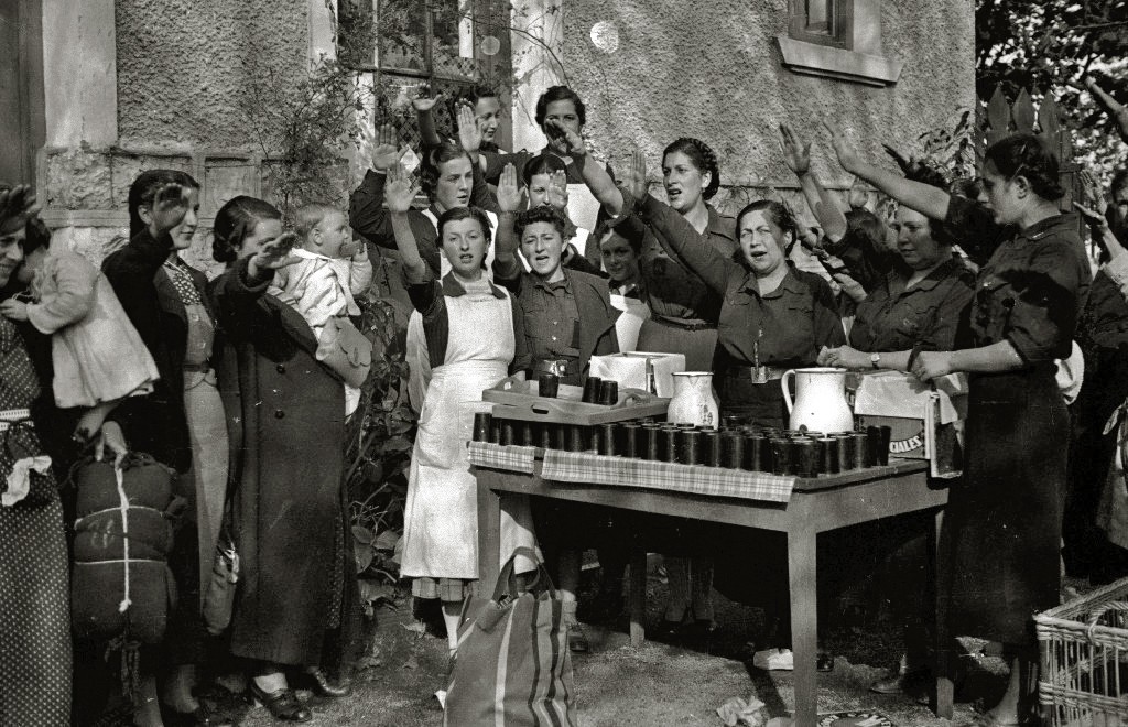 Imagen destacada: Mujeres de la Sección Femenina repartiendo comida. Fuente: Wikimedia.