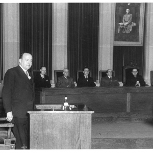 En cuanto a Eduardo Aunós (Lleida, 1894), fue diputado a Cortes por la Seu d’Urgell, por la Lliga, con Cambó, en 1916, y –como su hermano- fue también autor de escritos defendiendo el corporativismo: “ … creo que el movimiento sindical no es algo que sea insuperable; creo, por el contrario, que es algo que puede ser superado. No hay más que considerar que eran las organizaciones corporativas medievales; no había entonces Sindicatos, y sin embargo, existían organizaciones corporativas”.13 Durante la dictadura de Primo, fue Ministro de Trabajo, de 1923 a 1930. Como su hermano, pasó la guerra civil en Burgos. Y, ya bajo el franquismo, fue Ministro de Justicia entre 1943 y 1945.