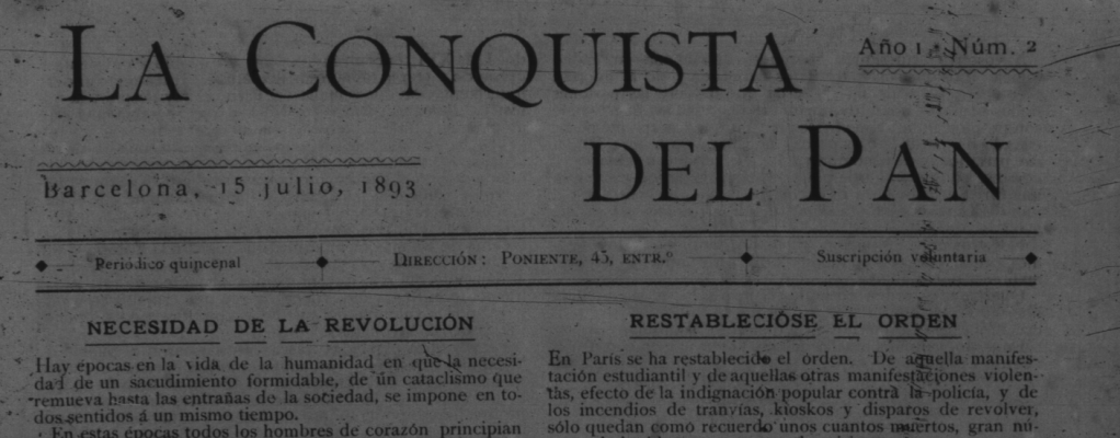 Periódico «La Conquista del Pan», Barcelona, 1893. Descarga aquí.