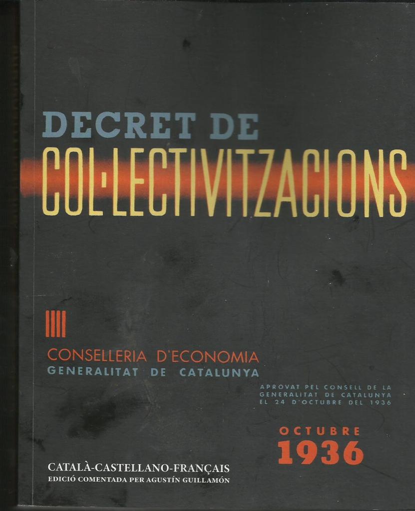 Reseña del Decreto de Colectivizaciones y control obrero de octubre de 1936. Reproducción facsímil de Editorial Descontrol en catalán, castellano y francés, comentada por Agustín Guillamón