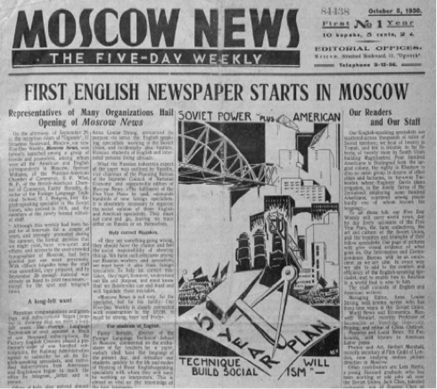 [12] El Moscow Daily News fue el primer periódico en inglés de la URSS bajo la dirección de la activista sindical de Seattle Anna Louise Strong (Friend, Nebraska, EE.UU, 1885- Pekín, 1970). Pronto se distribuyó por todo el mundo para ayudar a hacer propaganda de la causa revolucionaria soviética. Harry se unió al periódico en 1931.