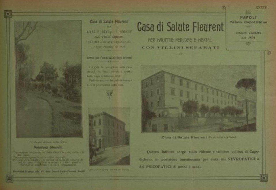 En la Vía Calata Capodichino, 211/A, en el distrito de San Carlo all´Arena de Nápoles, en Italia, sobre una colina, está Villa Fleurent, en la actualidad un centro educativo. En su día fue una casa de salud o casa de reposo, de titularidad privada, fundada en 1833 por Pietro Fleurent. El establecimiento estaba compuesto por varios pabellones y unos amplios jardines en el exterior, ocupados hoy día por el parque Mazzini y el parque Sirio, con muchas fuentes y una cascada, por donde los pacientes solían dar largos paseos como parte de su tratamiento. También contaba con una vaccheria, una granja de ganado que procuraba leche fresca y alimentos para los residentes. Con anterioridad a su fundación había sido un hospicio de convalecencia de la orden de los carmelitasi.