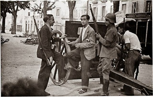 La derrota del ejército por el proletariado en la “zona roja” había dinamitado el monopolio estatal de la violencia, brotando de la explosión una miríada de poderes locales, directamente asociados al ejercicio local de la violencia. Violencia y poder estuvieron íntimamente relacionados. Por otra parte, en Barcelona, las llamadas “fuerzas de orden público”, esos guardias de asalto y esa guardia civil, que tanto habían dudado sobre el bando a elegir, y que habían acabado confraternizando con el pueblo en armas, habían sido acuarteladas por el gobierno de la Generalidad, a la espera del momento oportuno de apoyar la contrarrevolución. Esa situación revolucionaria común fue la que hizo surgir, sin consignas de organización alguna, ni centros de dirección de ningún tipo, en todos los lugares de España donde la sublevación fascista había sido derrotada: comités; armamento del proletariado; barricadas y patrullas de control; milicias populares; coches y camiones incautados con siglas pintadas en las carrocerías, abarrotados de hombres agitando fusiles por encima de sus cabezas, recorriendo alocada y ruidosamente las calles; desaparición de sombreros y corbatas; quema de iglesias; pases emitidos por los comités de defensa; saqueos de casas de la burguesía; juntas revolucionarias de ámbito regional o comarcal en Málaga, Barcelona, Aragón, Valencia, Gijón, Madrid, Santander, Sama de Langreo, Lérida, Castellón, Cartagena, Alicante, Almería, entre las más destacadas; persecución, encarcelamiento o asesinatos “in situ” de fascistas, militares sublevados, patrones y clero; incautación de fábricas, cuarteles y locales de todo tipo; comités de control obrero y un largo etcétera en el que el ejercicio de la violencia ERA EN SÍ MISMA la manifestación del nuevo poder obrero.