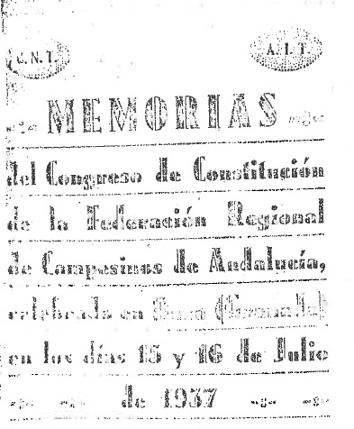 – Memorias del Congreso de Constitución de la Federación Regional de Campesinos de Andalucía, celebrado en Baza (Granada) en los días 15 y 16 de Julio de 1937, Sueca, Federación Regional de Campesinos de Andalucía, 1937.