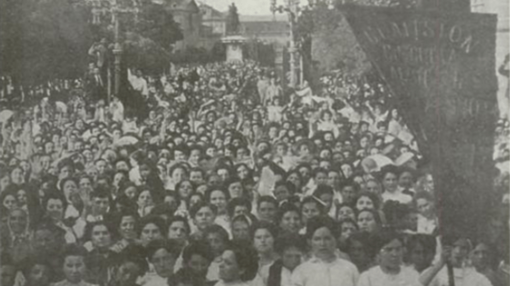 Había finalizado la que se considera la primera gran manifestación feminista de la historia de España, como señala Raquel Sánchez en Señoras fuera de casa. La manifestación buscaba dejar claro que las mujeres españolas no estaban bajo el dominio de la Iglesia Católica y que pensaban por ellas mismas (no olvidemos que esa idea de que ‘el confesor va a dictar el voto’ fue uno de los argumentos que se usaron contra el sufragio femenino y que Clara Campoamor tuvo que escuchar en los años 30 antes de lograr que la II República reconociese el voto de las mujeres).