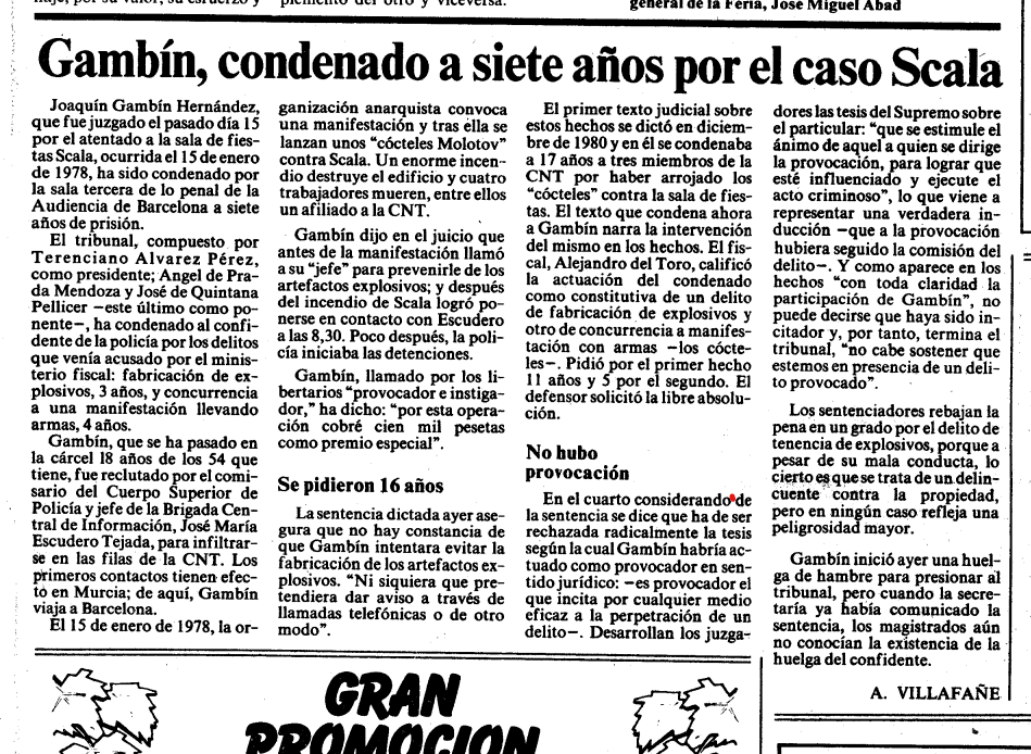 Después del Scala y en cuestión de semanas, si no de días, Gambín ya estaba sentando las bases para otro episodio de guerra sucia del que hasta hace poco teníamos muy pocos datos, el de ERAT. No sé si has leído el (para mí) magnífico libro de Pau Juvilla, pero ahí queda claro el papel destructivo de Gambín y que en absoluto se circunscribió a la CNT ni al movimiento libertario, como argumentó Cañadas.