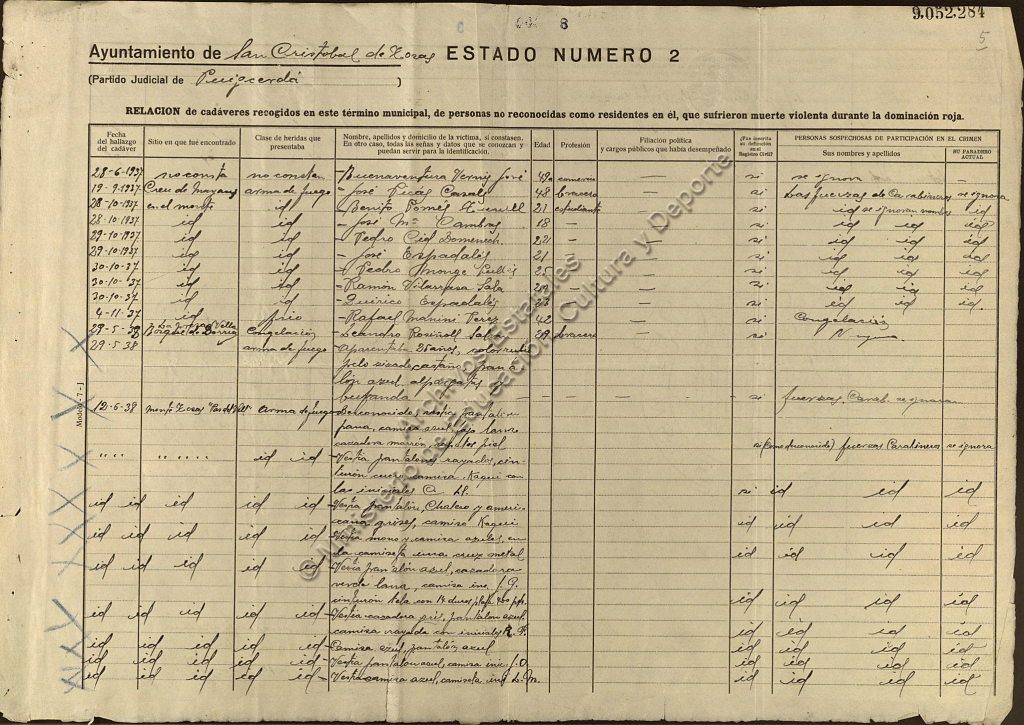 Hoja de la Causa General sobre los muertos en la Collada de Toses