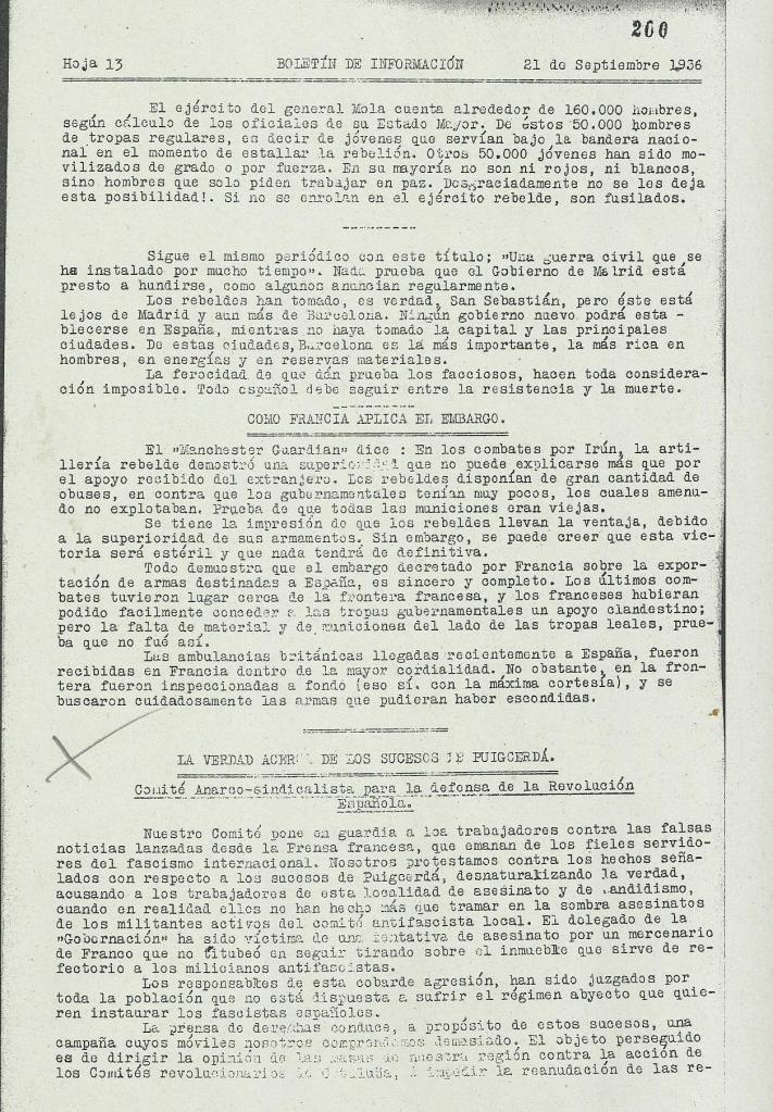 El documento en cuestión es un artículo, redactado por el Comité Anarcosindicalista para la Defensa de la Revolución Española, publicado en el Boletín de Información de la CNT-FAI del 21 de setiembre de 1936, páginas 13 y 14.