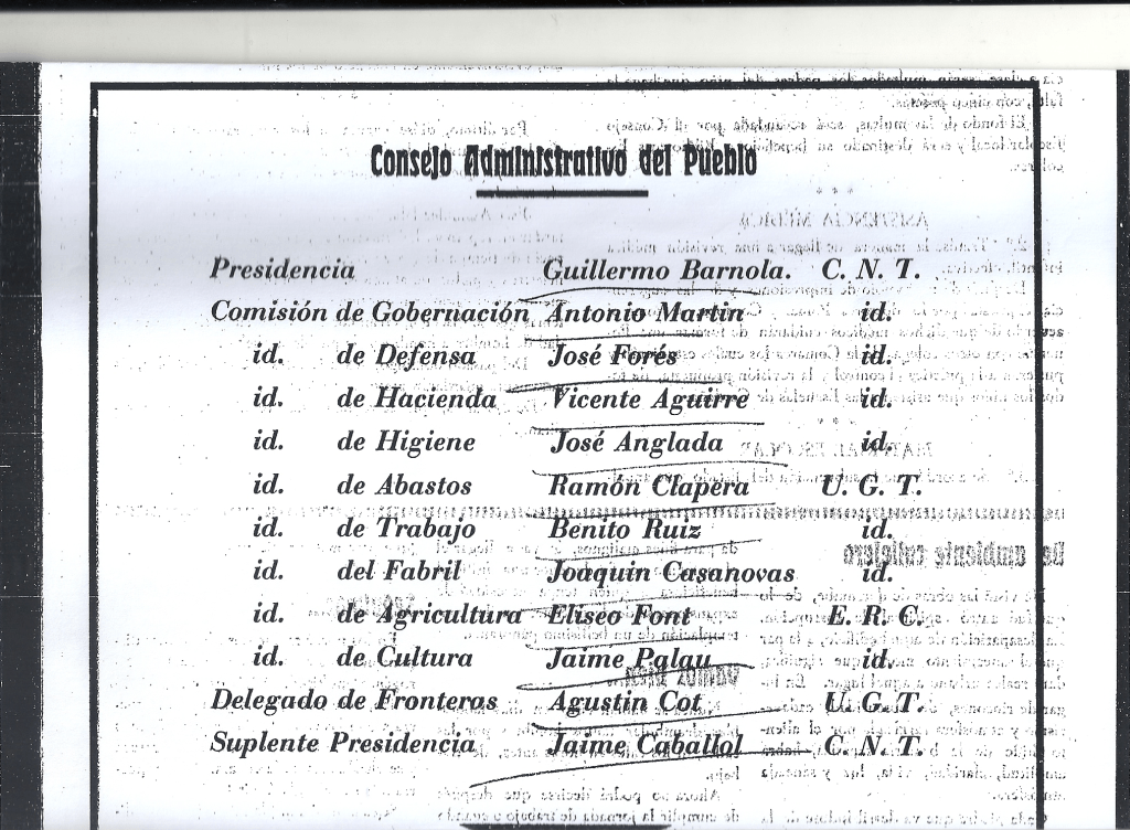 Y todo ello se advierte al observar que en el Consejo había muchos nombres que coincidían con los que figuraban por la Esquerra en la candidatura de 1933, o que habían resultado procesados tras producirse los sucesos de octubre de 1934, como eran los casos de Guillermo Barnolá, Ramón Clapera, Joaquín Casanovas, Eliseo Font, Jaime Palau, Agustín Cot o Jaime Caballol. Resaltando que Barnolá y Caballol figuran en el Consejo como miembros de la CNT, mientras que Clapera, Cot y Casanovas estaban como UGT, o que Font y Palau lo son, sin ningún tapujo, por ERC, cuando era evidente que los siete eran de ERC.