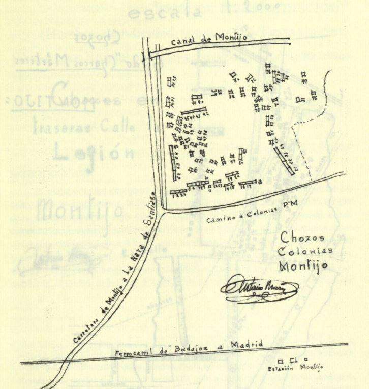 Cualquier viajero, o viajera, que fuera en tren a Badajoz, o volviera desde esta ciudad, hacia mediados de 1956, podría ver a su paso por el pueblo de Montijo el improvisado asentamiento de chozos y chabolas que, parejo a la vía del tren, se concentraba entre el llamado Camino de Las Colonias y el canal de Montijo, la obra hidráulica que alimenta una presa cercana y de la que irradian, a lo largo de su recorrido, acequias y caminos, el centro neurálgico de lo que finalmente se conoció como el Plan Badajoz.