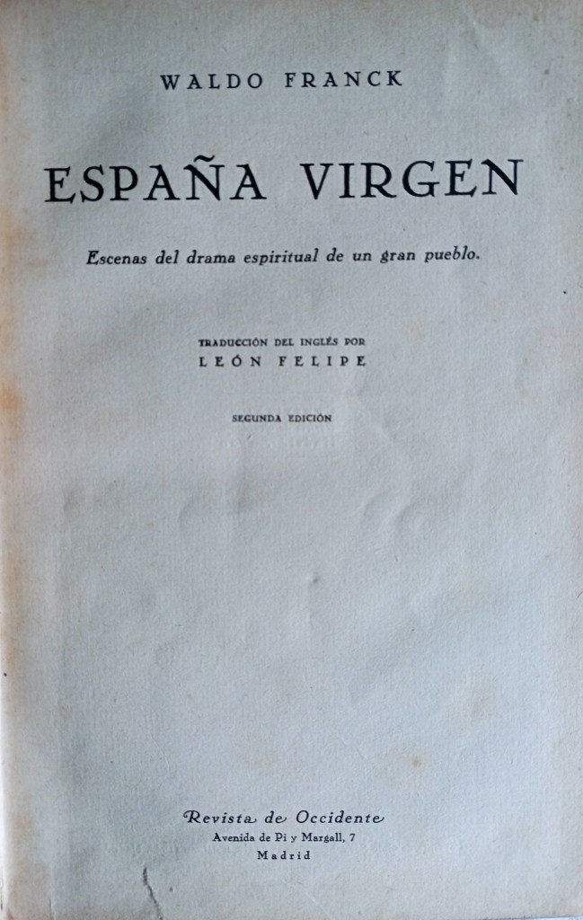 Waldo Frank probablemente conocería ya, de primera mano, las regiones del oeste del Estado español antes de visitarlas. Un amigo íntimo, a quien descubrió en Estados Unidos, le habría narrado las excelencias y desgracias de tantos sitios: Zamora, Tábara, Salamanca, Galicia, Santander… Su amigo terminó convirtiéndose también en un poeta universal y su traductor al español de la monumental España virgen, este era León Felipe.