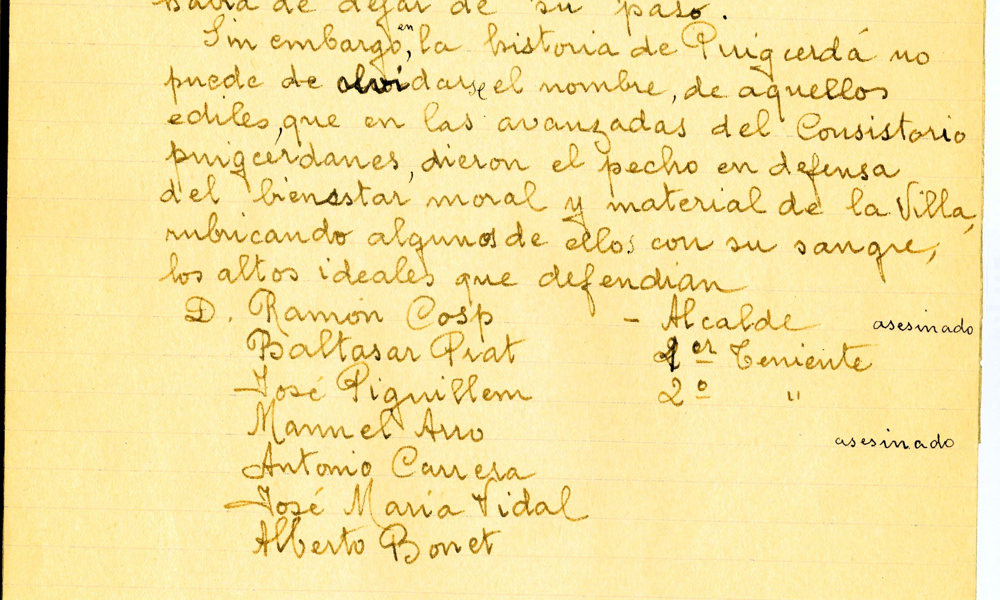 La lista de los (20) derechistas que debían ser fusilados el 9 de setiembre de 1936 fue elaborada por la ERC ceretana y aprobada por Eliseu Font, secretario del Casal de ERC.