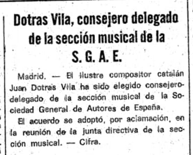 Dotras gozó de cierta popularidad como auto y al ir afianzándose dentro en la dictadura, llegó de manera natural algo muy deseado por los autores de la época: la asunción de cargos de responsabilidad dentro de la SGAE franquista, de la que fue en principio purgado.