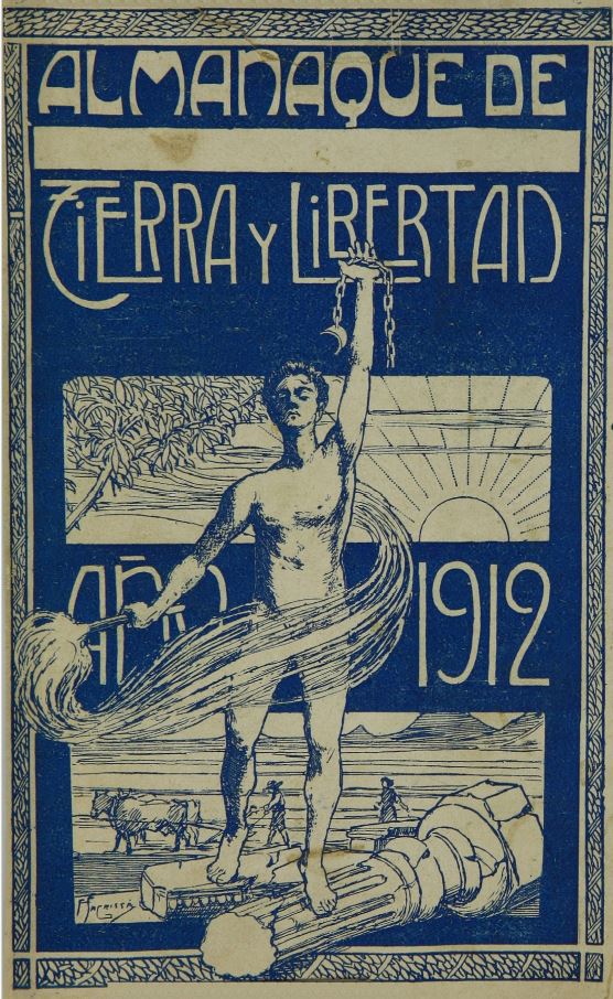 Tierra y Libertad, que tuvo diversas épocas y diversos impulsores, publicó un anuario a finales de 1911, destinado al año 1912. Por entonces el semanario ácrata estaba dirigido por el tipógrafo y anarcosindicalista Tomás Herrero Miguel (1877-1937). El almanaque para 1912, impreso en el Establecimiento Tipográfico de Félix Costa, Calle del Conde de Asalto, 45, Barcelona, le fue encargado a Anselmo Lorenzo (1841-1914), uno de los primeros internacionalistas y autor del Proletariado Militante, entre muchas otras obras. En su cabecera llevaba el subtítulo de “Ciencia, arte, literatura y revolución social. Sociedad es equidad”. El anuario contenía textos sobre evolución humana y animal, el origen del sistema solar y de la tierra, el dinamismo atómico, el tiempo, la revolución, la libertad de enseñanza, el lenguaje, el anarquismo, el proletariado, la situación de la mujer, la vivienda y otros muchos más firmados por plumas como las de Elisée Reclus, Kropotkin, Anatole France, Visitación Portilla y el mismo Anselmo Lorenzo.