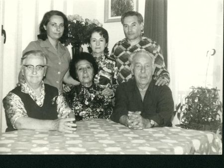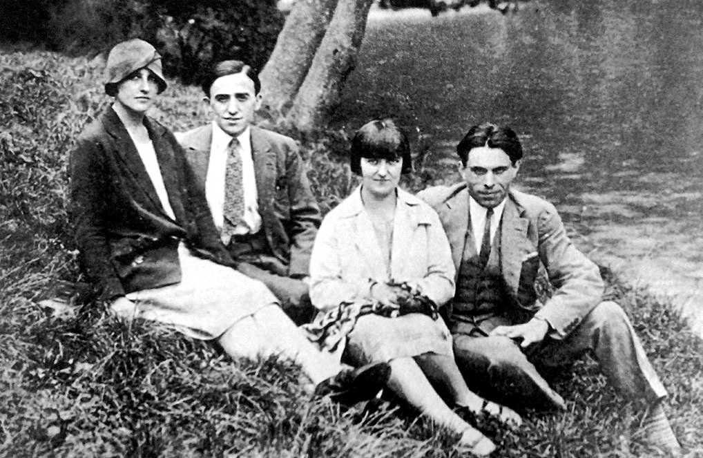 De izquierda a derecha, de pie, Colette Durruti, Joaquina Dorado, Liberto Sarrau; sentadas, Émilienne Morin, Rosa Durruti (hermana) y Liberto Sarrau. Coleccionista: Liberto Sarrau. Fotografía disponible en IISG, International Institute of Social History