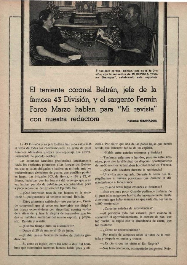 6 Paloma Granados, “El Teniente Coronel Beltrán, jefe de la 43 División, y el sargento Fermín Marzo hablan para Mi Revista con nuestra redactora”