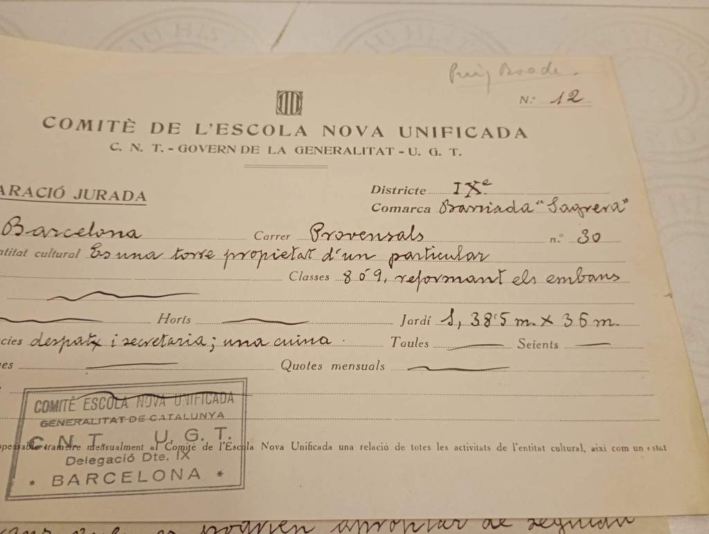 En primer lloc, en aquesta data l’Escola Acràcia ja funcionava i era l’Ateneu Racionalista de la Sagrera, qui la dirigia i per tan, la “persona” -la Confiscació era de tot “Oficial”- que tenia l’obligació de declarar-la. En segon lloc, la habilitació del Refugi al 1937,-datem possiblement, la seva posada en funcionament, després del 3 d’octubre del 37– a l’igual com les obres de remodelació i pintura del centre educatiu -ja sabem que no va ser el CENU-, les podien portar a terme els mateixos sindicats segons la normativa vigent, en aquest cas la CNT.
