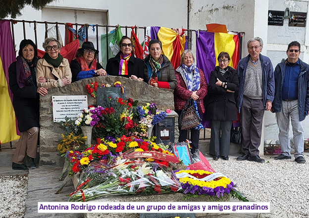Antonio Machado, Miguel Hernández y García Lorca son los llamados «poetas del sacrificio»: Lorca fue ejecutado, Machado en el exilio, y Hernández preso (hasta morir). Machado quedó tan pobre, que terminó en una «tumba de pobre». Picasso y Camus compraron la tumba en la que está ahora. Mucha gente dice que Machado merece una mejor tumba, con lujos, pero Machado prefería una sencilla, así que está muy bien. Voy con banderas republicanas, que me gustan mucho, y también porque lo he usado como modo de resistencia en el franquismo, porque iba con ella, y me decían que estaba prohibida, pero yo les decía que nací en 1935 y esa era mi bandera, a ver qué hacían. Y se me quedó. Les molestaba y eso me gustaba. Pero es que además es muy bonita.