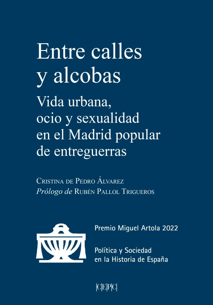 Entre calles y alcobas. Vida urbana, ocio y sexualidad en el Madrid popular de entreguerras es obra de Cristina de Pedro Álvarez, publicado por el Centro de Estudios Políticos y Constitucionales, aborda el estudio de uno de los principales conflictos culturales que se dirimieron a principios del siglo xx: aquel surgido en torno a la sexualidad y las nuevas formas de vida urbana. Su origen está en su tesis doctoral, que fue premiada con el Premio Miguel Artola de la Asociación de Historia Contemporánea. Un volumen académico con un elevado precio (pídalo en su biblioteca de confianza) que ofrece una densísima (en el buen sentido) información sobre la evolución de las costumbres de las clases populares urbanas durante el periodo de crecimiento de la ciudad capitalista.