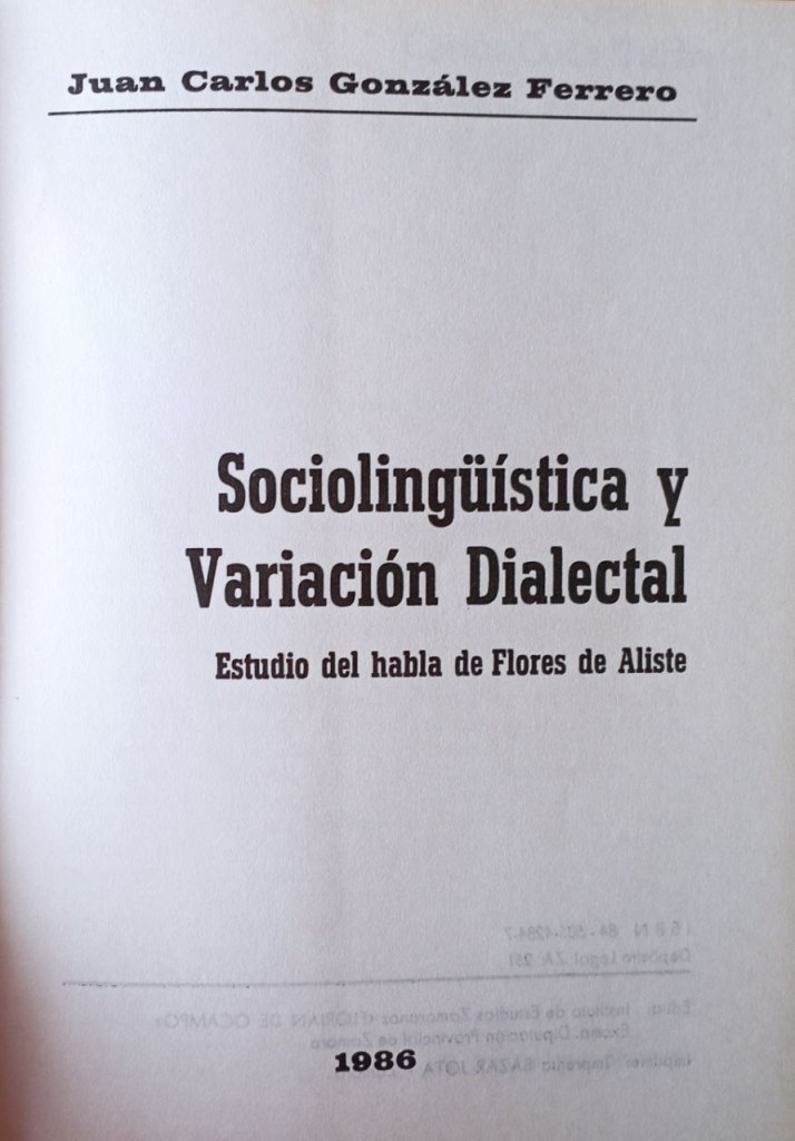 Sociolingüística y variación dialectal. Estudio del habla de Flores de Aliste es un libro que he consultado en bastantes ocasiones. Un estudio imprescindible pero difícil de conseguir hoy, prácticamente solo disponible en bibliotecas y algunas librerías de viejo, que debería reeditarse sin demora.