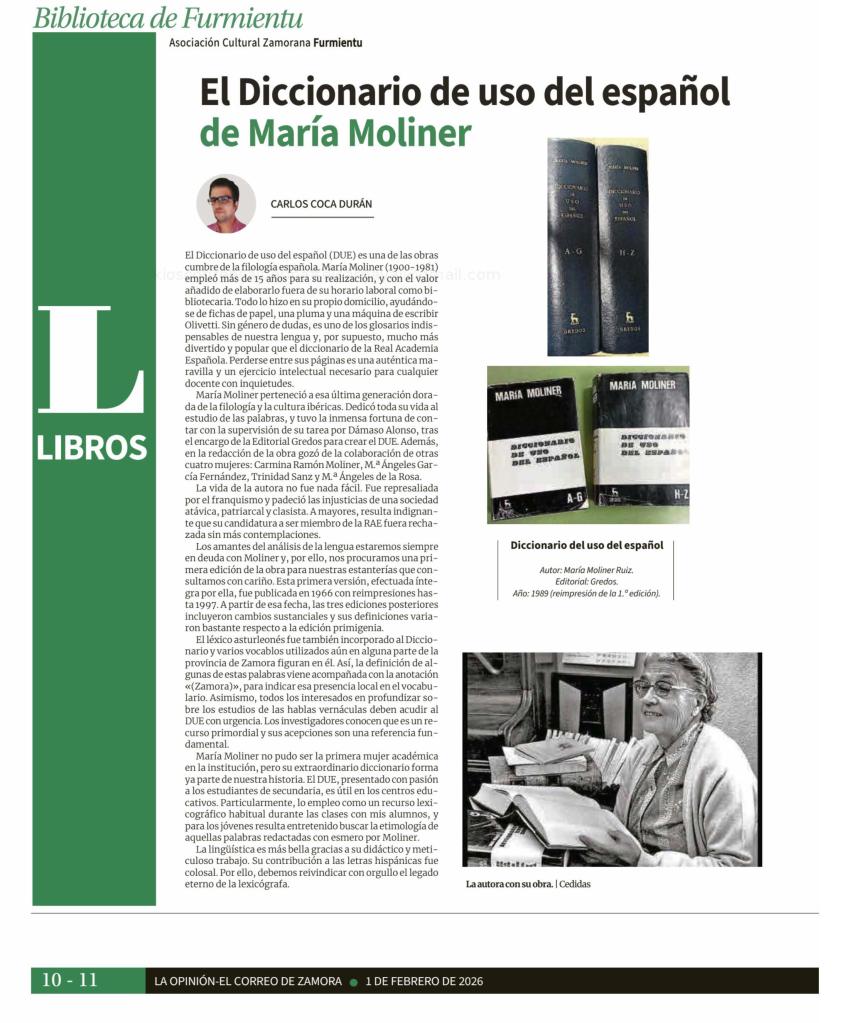 María Moliner no pudo ser la primera mujer académica en la institución, pero su extraordinario diccionario forma ya parte de nuestra historia. El DUE, presentado con pasión a los estudiantes de secundaria, es útil en los centros educativos. Particularmente, lo empleo como un recurso lexicográfico habitual durante las clases con mis alumnos, y para los jóvenes resulta entretenido buscar la etimología de aquellas palabras redactadas con esmero por Moliner.