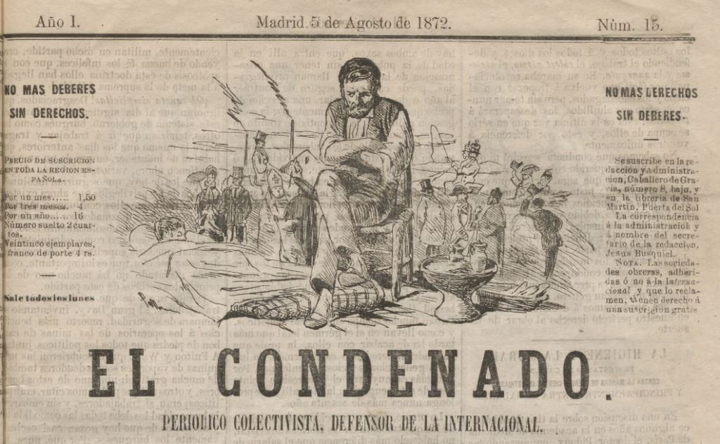 [1] “… por todo lo que declaradamente encierra de atentatorio a la integridad y seguridad de la patria y ofensivo a la moral pública en su denegación del Estado, de la propiedad y de la familia”. Gaceta de Madrid, 17-01-1872, p. 1.