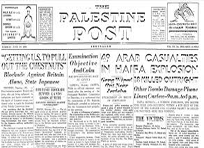 “49 víctimas árabes en una explosión en Haifa. The Palestine Post, 20/06/1939