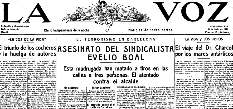 Anarquismo BiografíasCentenario del asesinato de tres cenetistas en aplicación de la Ley de Fugas. Madrugada del 18 de junio de 1921